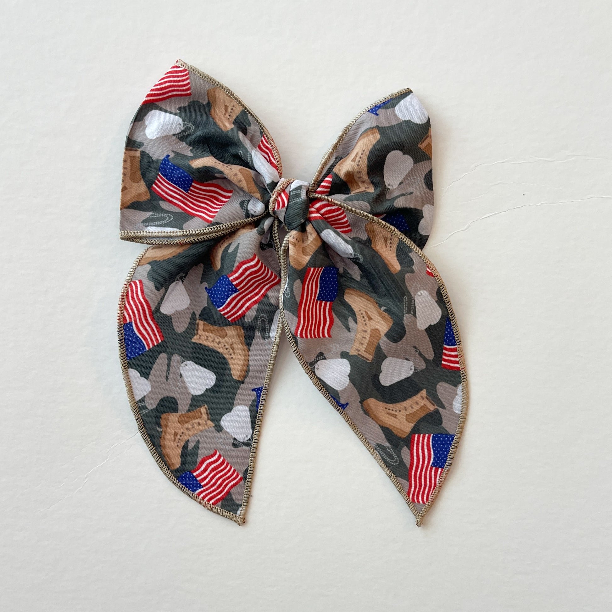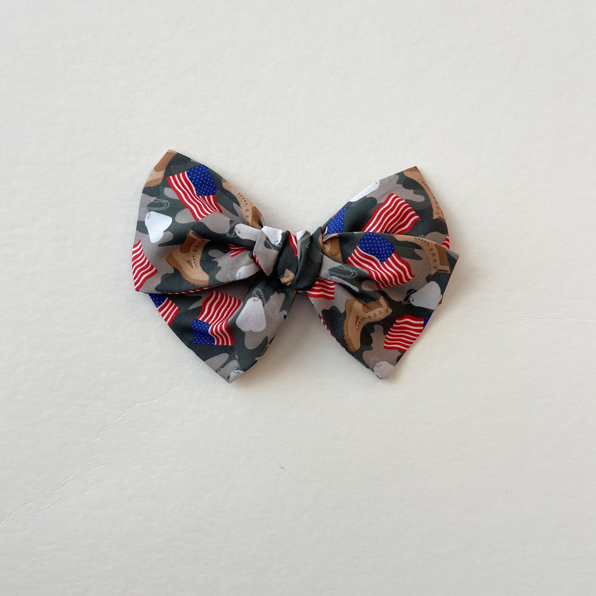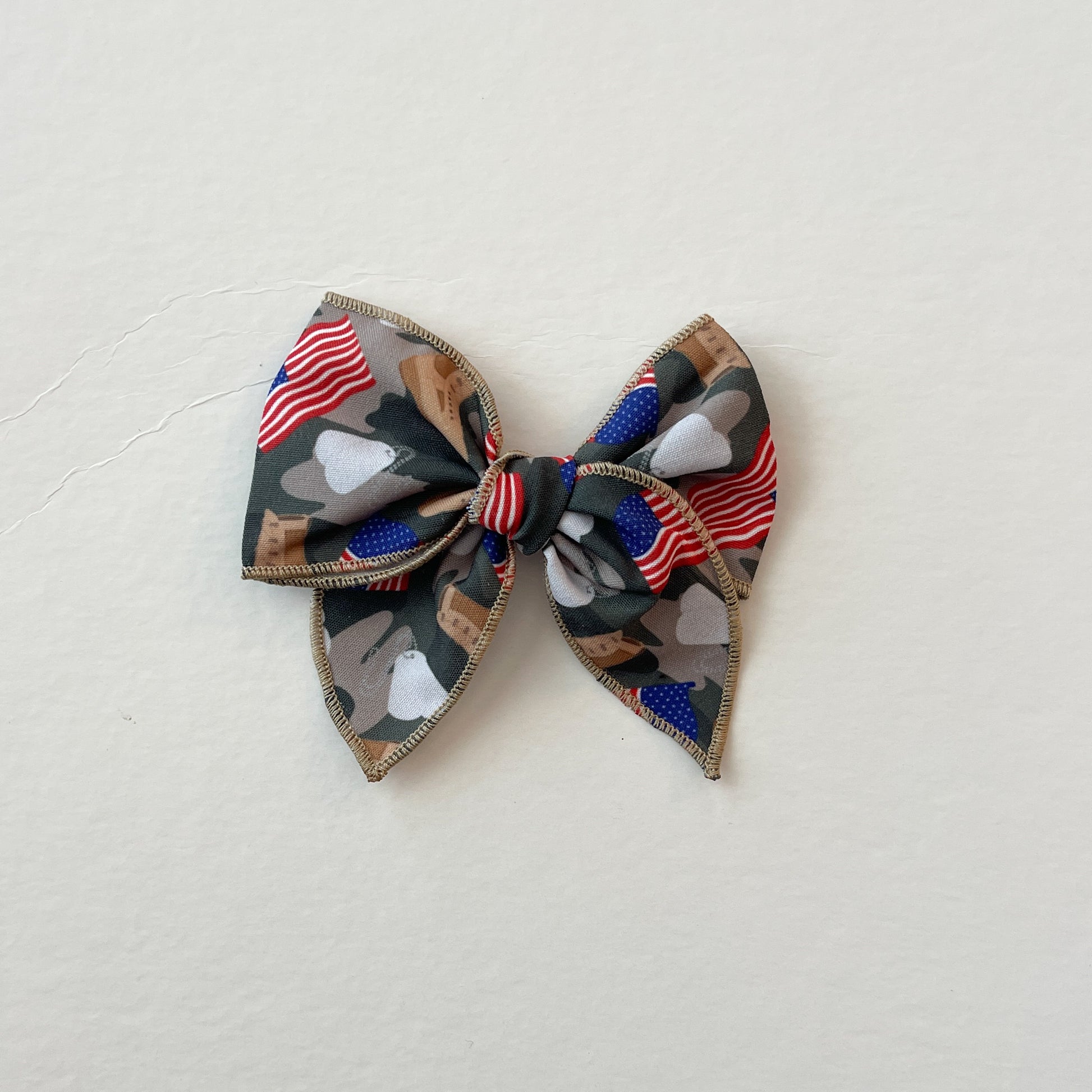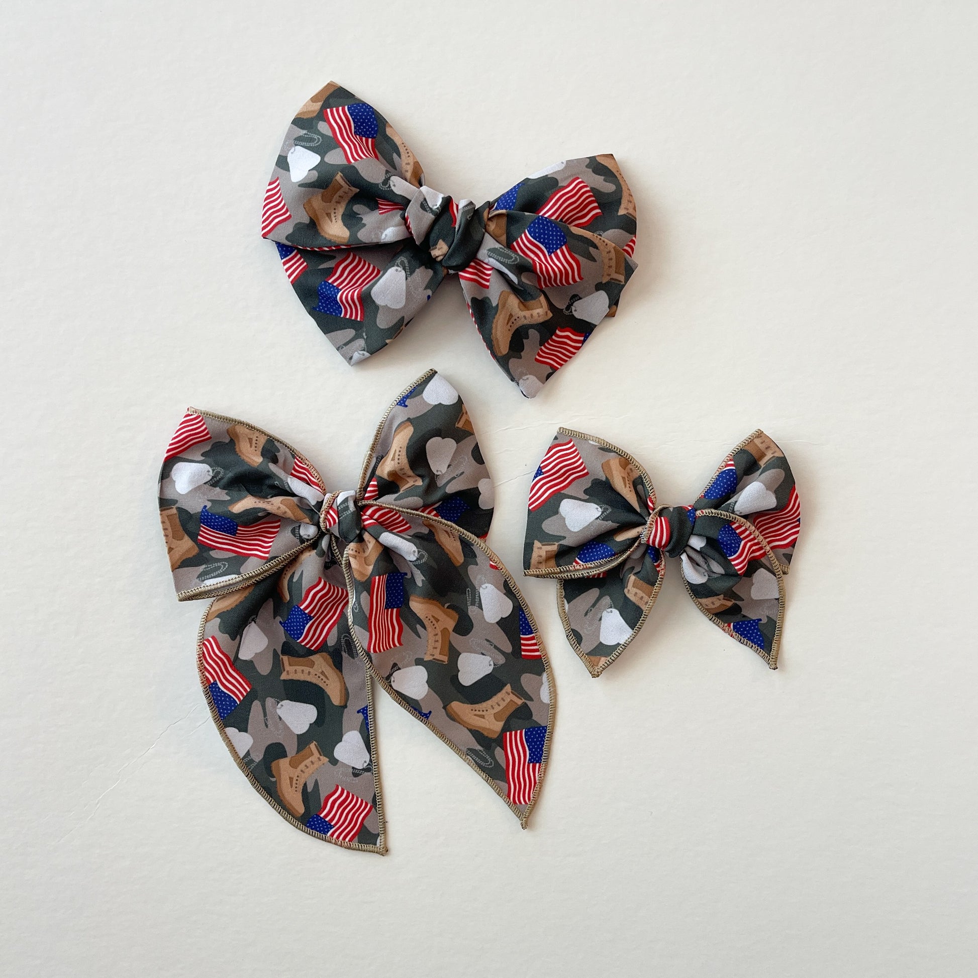 Bows are not a toy. Please do not let your child play with the hair bows as they can become wrinkled, dirty, or pulled apart. All bows are glued before they leave Shop Tay & Mae, but the will of a determined toddler can pull them apart. The clip is glued in for compliancy, but if the bow is ripped apart the clip is a choking hazard. We advise that you take bows off when children are unsupervised for choking hazards and suffocation risks.