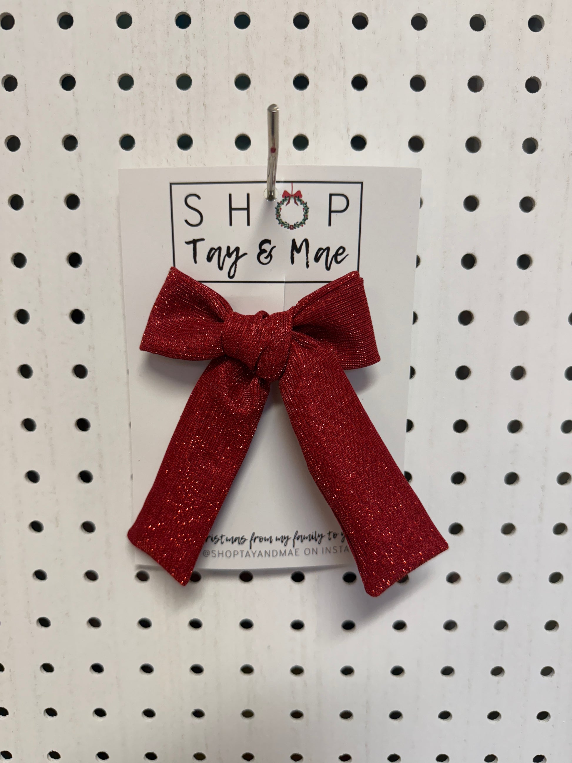 Bows are not a toy. Please do not let your child play with the hair bows as they can become wrinkled, dirty, or pulled apart. All bows are glued before they leave Shop Tay & Mae, but the will of a determined toddler can pull them apart. The clip is glued in for compliancy, but if the bow is ripped apart the clip is a choking hazard. We advise that you take bows off when children are unsupervised for choking hazards and suffocation risks.