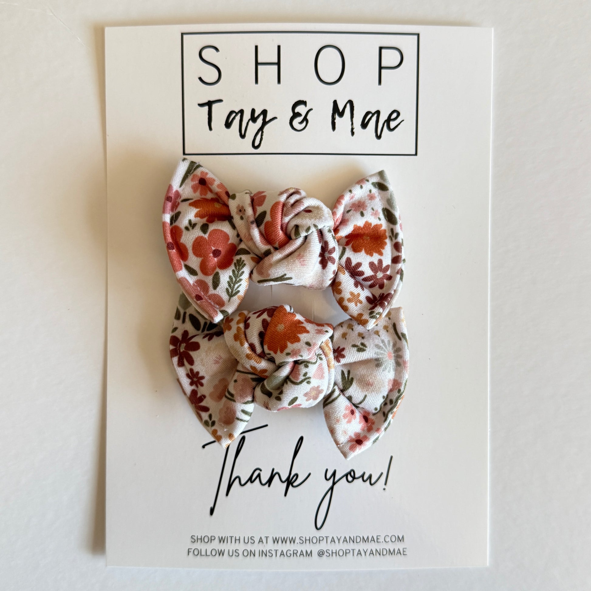 Bows are not a toy. Please do not let your child play with the hair bows as they can become wrinkled, dirty, or pulled apart. All bows are glued before they leave Shop Tay & Mae, but the will of a determined toddler can pull them apart. The clip is glued in for compliancy, but if the bow is ripped apart the clip is a choking hazard. We advise that you take bows off when children are unsupervised for choking hazards and suffocation risks.